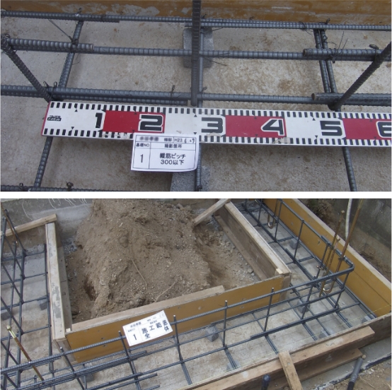 基礎補修をした際に、適切に鉄筋の施工がされているか、アンカーボルトの結束状態はどうかなどを検査します。