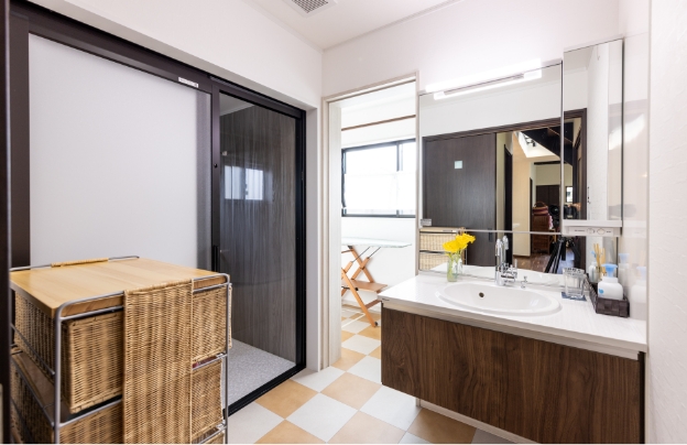 キッチンに立てば隅々まで視線が届き、明るく開放的な住まいに大満足です。また、買い物帰りに玄関からキッチンまで直接行ける動線や、洗面室に隣接したランドリールーム等、効率的に室内を移動できるので、家事がスムーズにできるようになりました。収納も必要な場所に設けて頂き、物が外にでないスッキリとした住まいに生まれ変わりました。