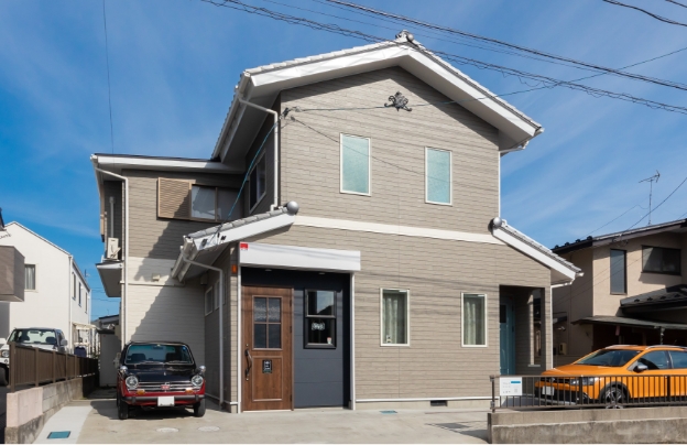 耐震補強、断熱工事を施し、住宅性能も新築同様に再生。外観デザインも和風から洋風デザインに一新してカフェの雰囲気とマッチしている。