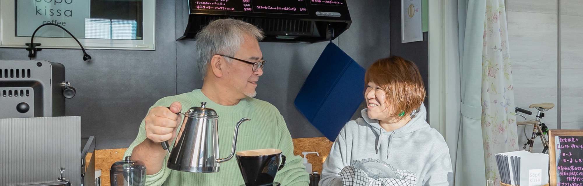 多目的スペースの壁には撮影に適したクロスを施し、調光機能付照明器具を採用して、ご主人様の撮影スタジオとして利用することも。さらにその隣には、ご夫婦で営む小さなカフェも誕生しました。「断熱工事を施し、サッシは全て気密・断熱性能の高い製品に交換したので、室内はとても暖かく快適です。また、前面道路がバス通りで音が気になっていましたが、今では全く聞こえなくなりました。」とご夫婦の笑顔が弾けました。