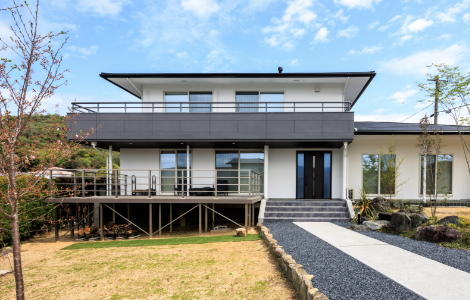 薪ストーブ、車のガレージがある暮らしを夢見て、眺望が素晴らしく、広い土地に建つ中古住宅を購入したお施主様。趣のある和風の住まいでしたが、ご家族のライフスタイルに合わないため、まるごとリフォームでモダンな住まいへ再生することに。