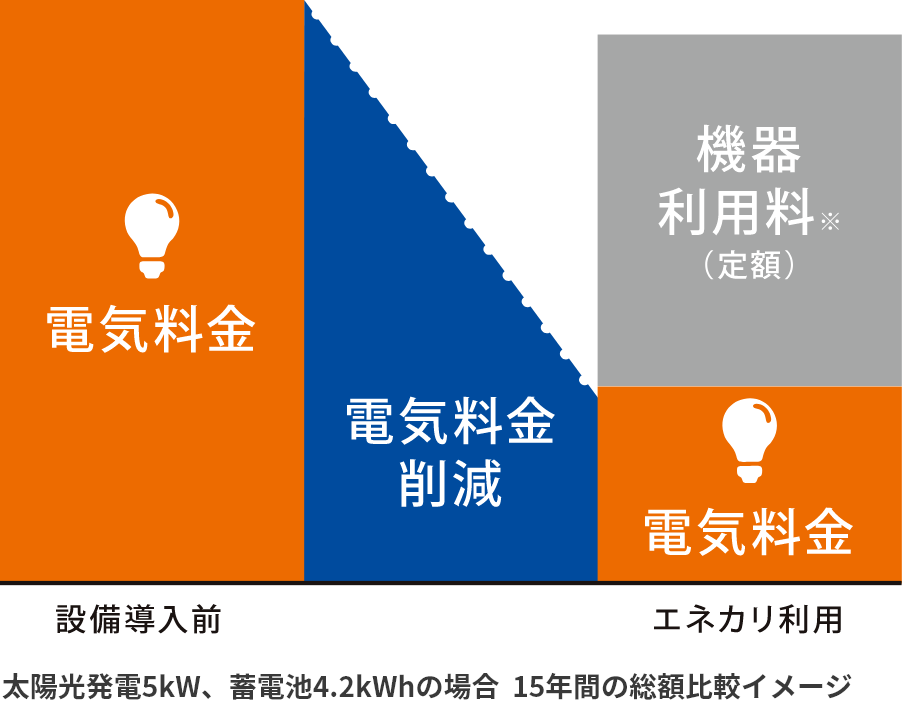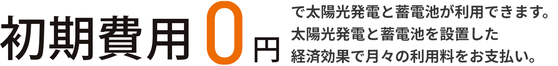 初期費用0円で太陽光発電と蓄電池が利用できます。太陽光発電と蓄電池を設置した経済効果で月々の利用料をお支払い。
