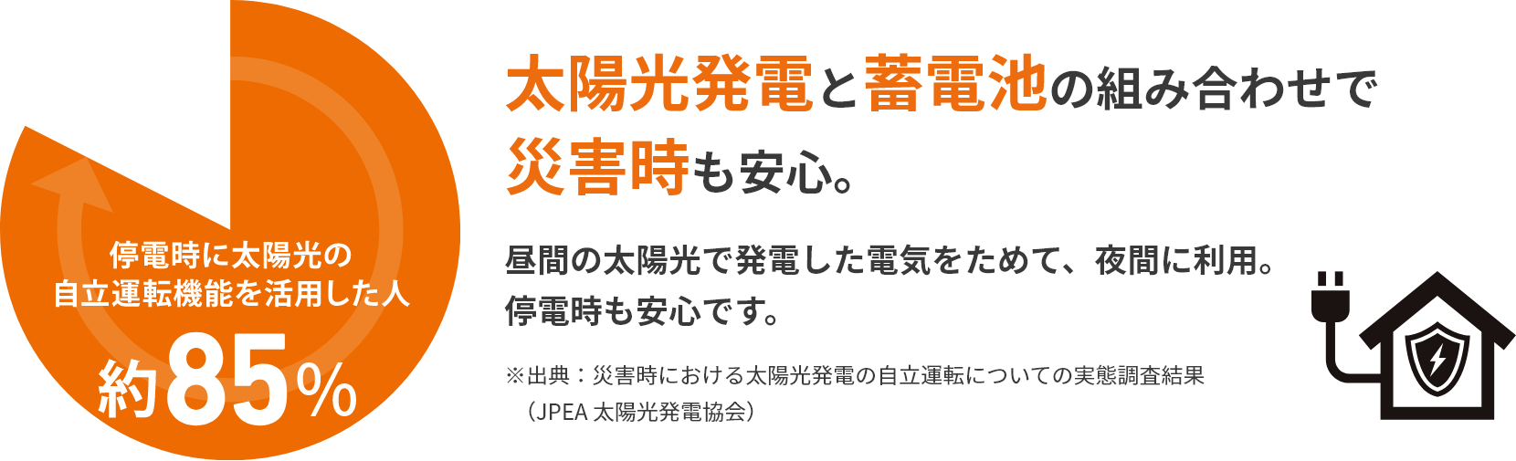 太陽光発電と蓄電池の組み合わせで災害時も安心。