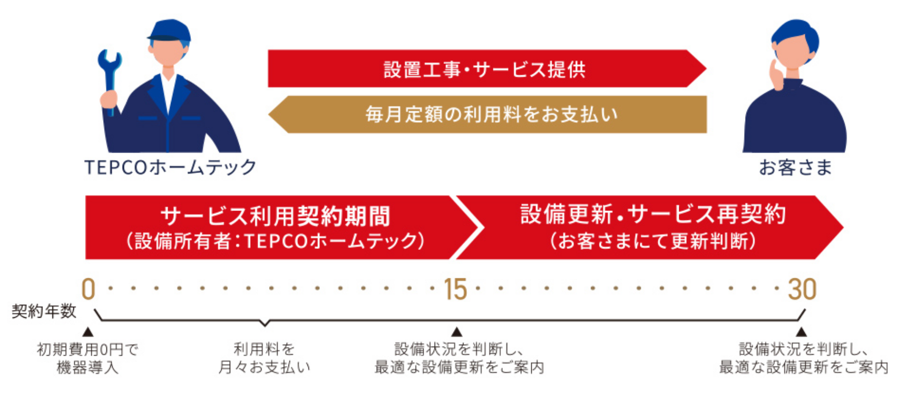 15年後の契約満了時に、TEPCOホームテックより最適な機器更新のご提案をいたします。