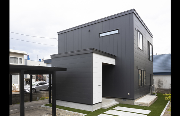 子どもが生まれたことを機に、手狭なアパートから戸建 住宅の購入を検討していたご家族。希望地域の地価から新築は予算オーバーでしたが、性能やデザインなどは妥協したくないというご希望を、中古住宅リノベーシ ョンで解決しました。希望条件に合った中古住宅は、法律の規定により減築する必要がありましたが、減築で様々なメリットを生む よう工夫したプランを実現しました。 減築した部分の基礎を利用したRC擁壁をつくることで、隣地からの落雪 問題や隣地の外壁ではない景観を生み出しつつ、プライバシーを確保できる庭空間を創造できました。 また、耐震改修と断熱改修を行い、減築、長期優良住宅化で建物としての資産価値を向上することができました。