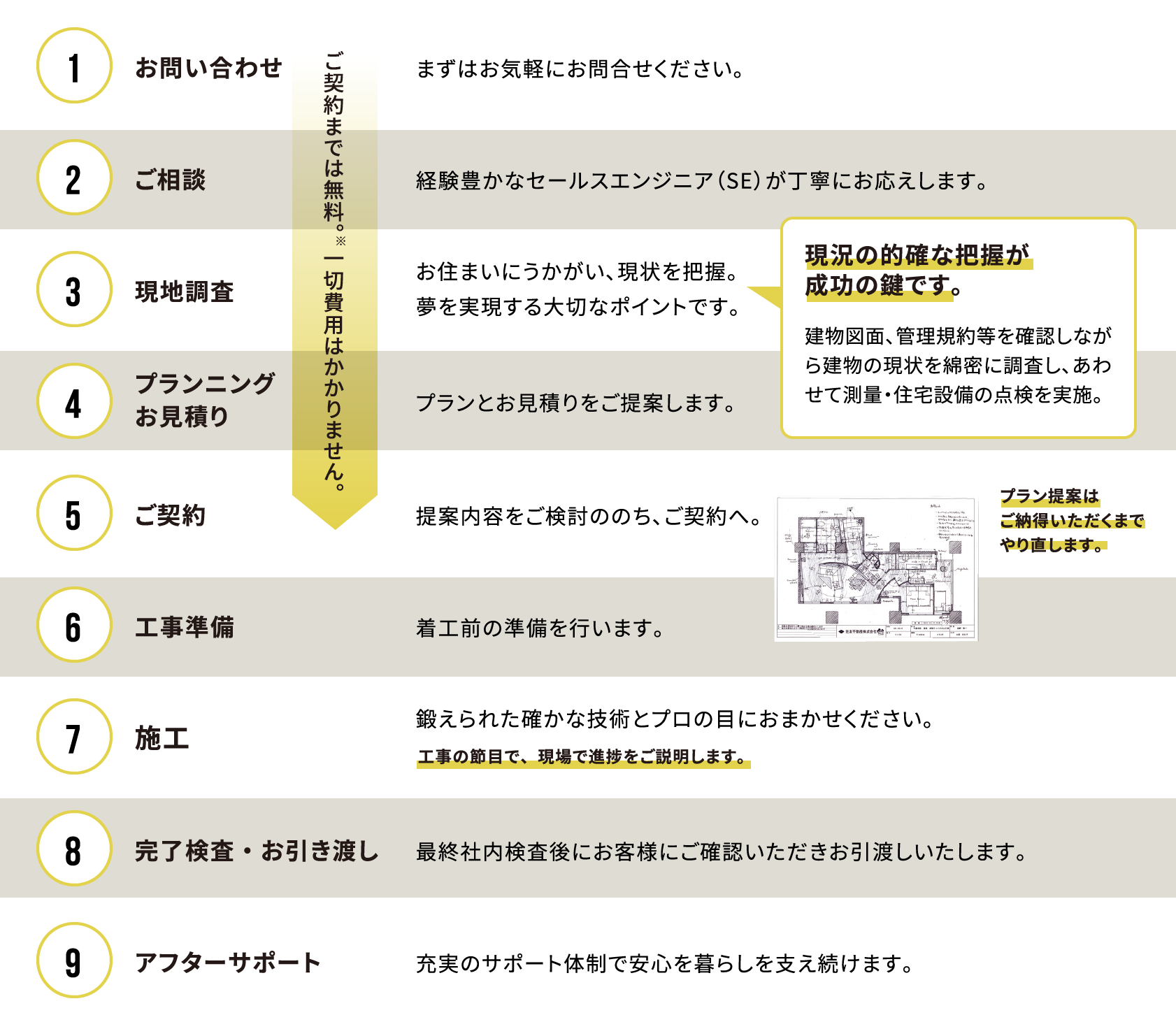 設計と施工いずれにも確かな知識を有するセールスエンジニアが最適なリフォームプランをご提案いたします。