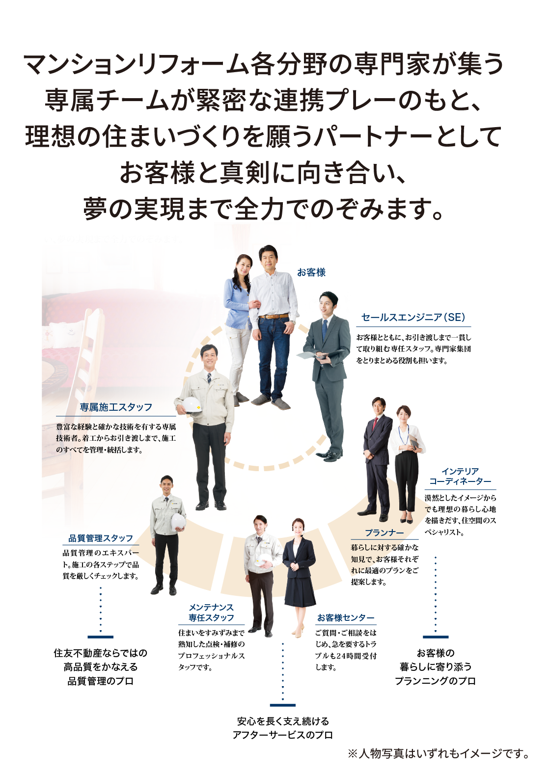 お客様それぞれの夢の実現に向けて、心をこめて全力で取り組みます。